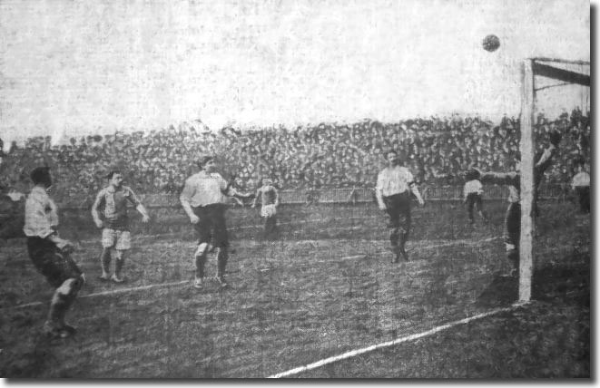 below. 'The match finished goalless, with Everton goalkeeper Billy Scott, later